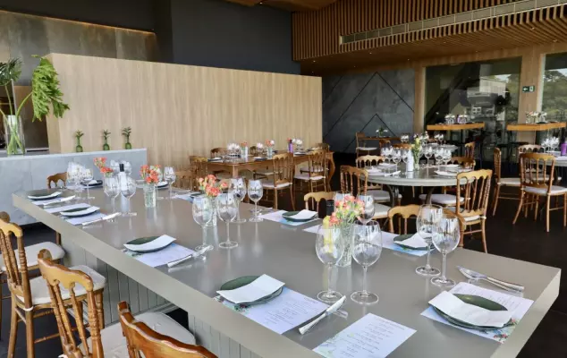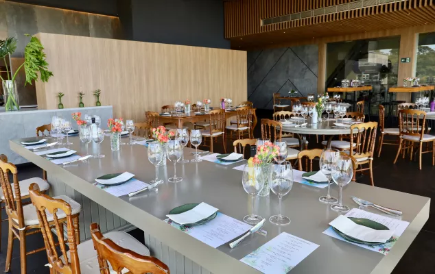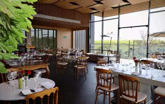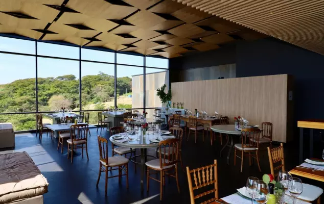 Com uma vista panorâmica deslumbrante dos vinhedos e da cidade de Ribeirão Preto, o Restaurante Terras Altas oferece um ambiente amplo, elegante e acolhedor, onde a decoração contemporânea se encontra com a beleza natural ao redor.